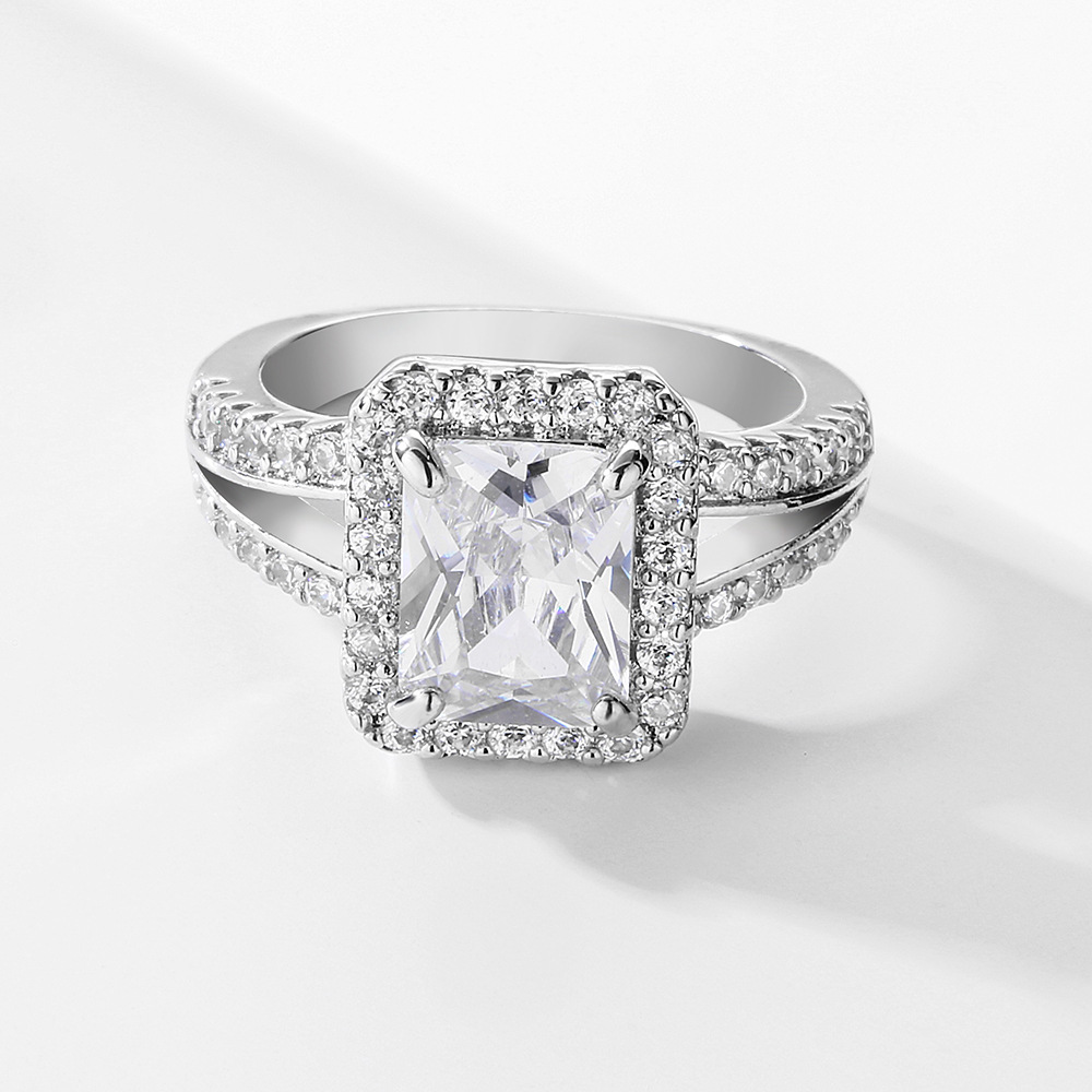 Classic European And American Four-Prong White Square Zircon Ring For Women