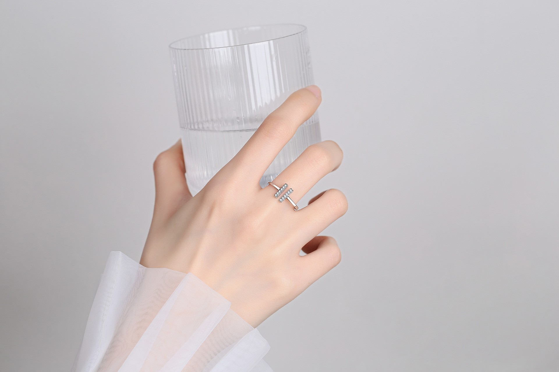 Diamond-encrusted Ring For Women A Stylish High-end Cool-girl Open-ring Accessory