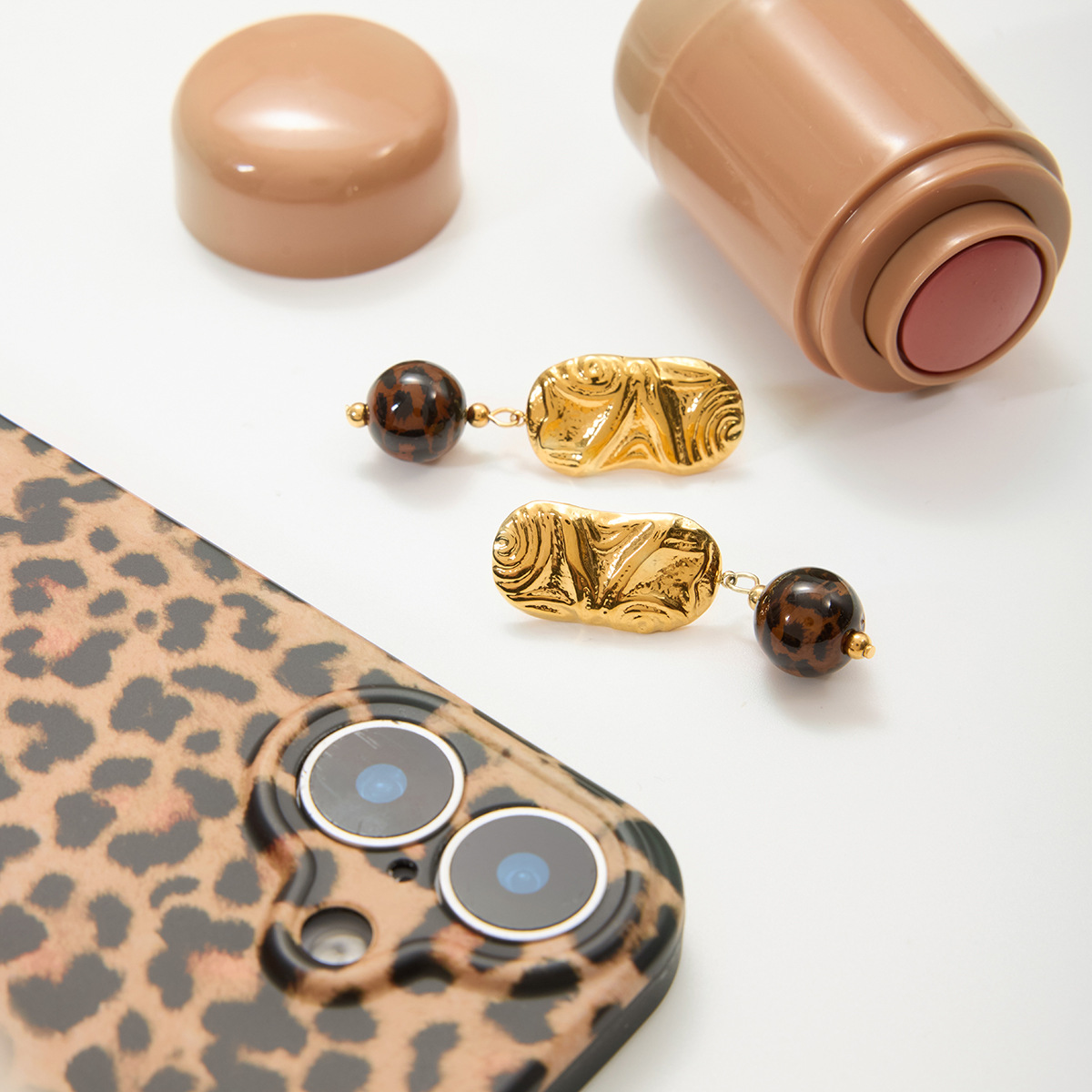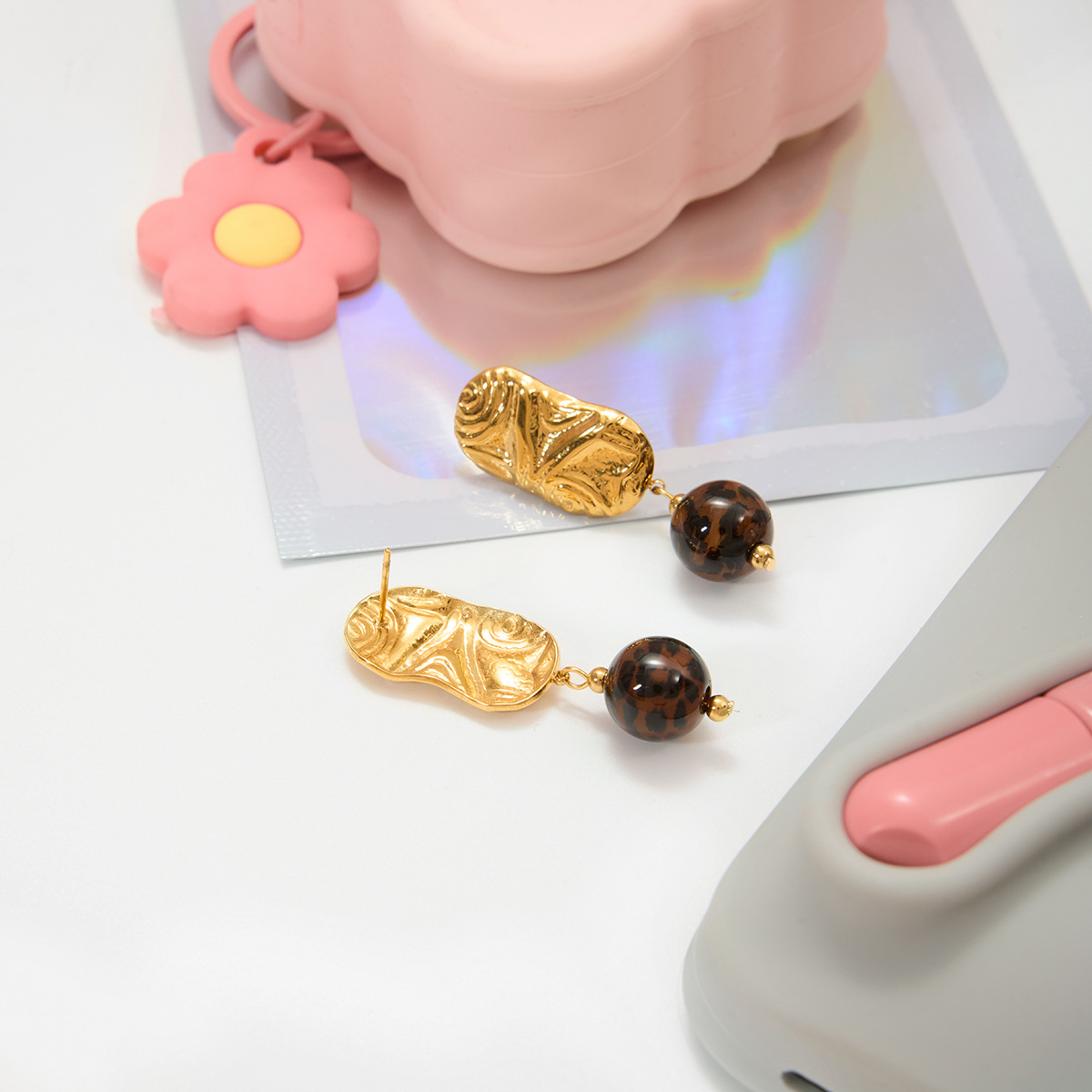 Retro Leopard-Print Resin Bead Pendant Earrings