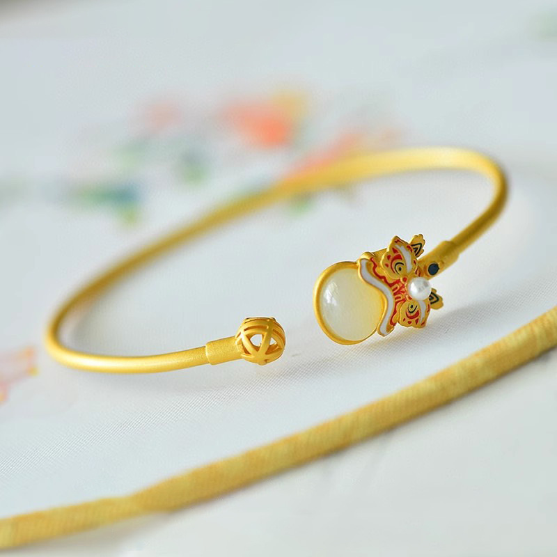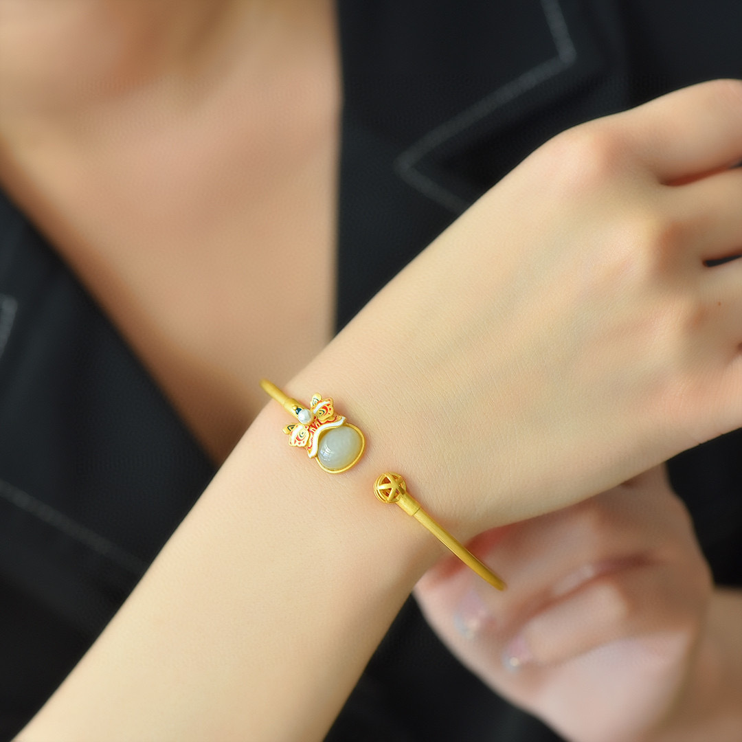 S925 Sterling Silver Lion Dance Bracelet In Chinese Style