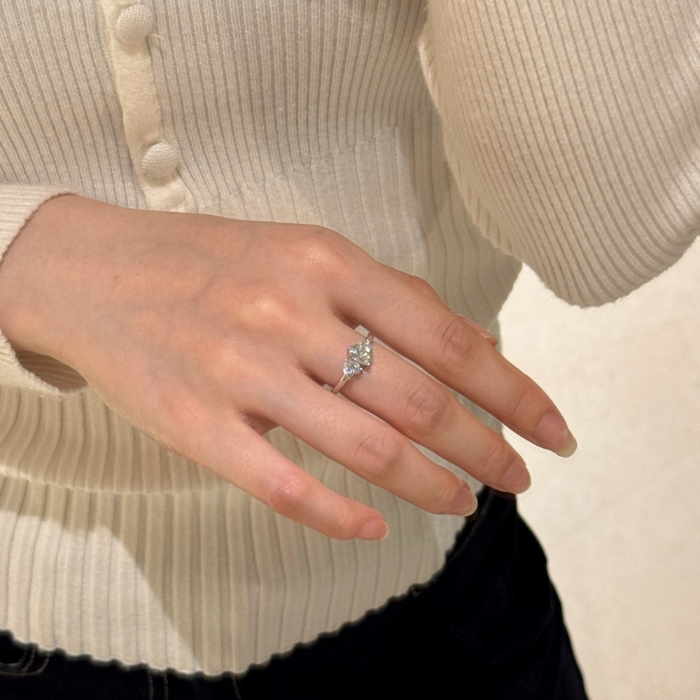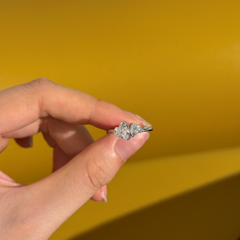 Silver S925 White Heart Shape Heart-shaped Double Main Stone Ring
