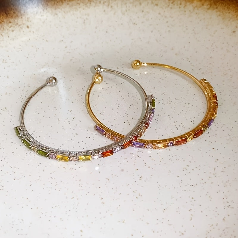 Women's Elegant Open Bangle, Light Luxury Versatile Colorful Bracelet, Ideal Gift For Ladies