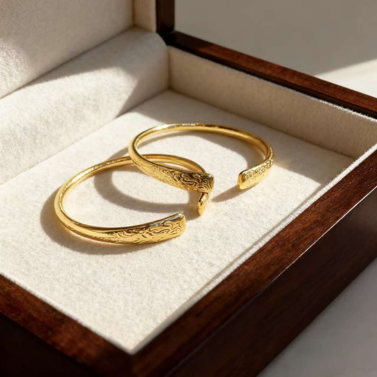 Womens Fine Sand Gold Dragon Leaps Phoenix Sings Gold Bracelet